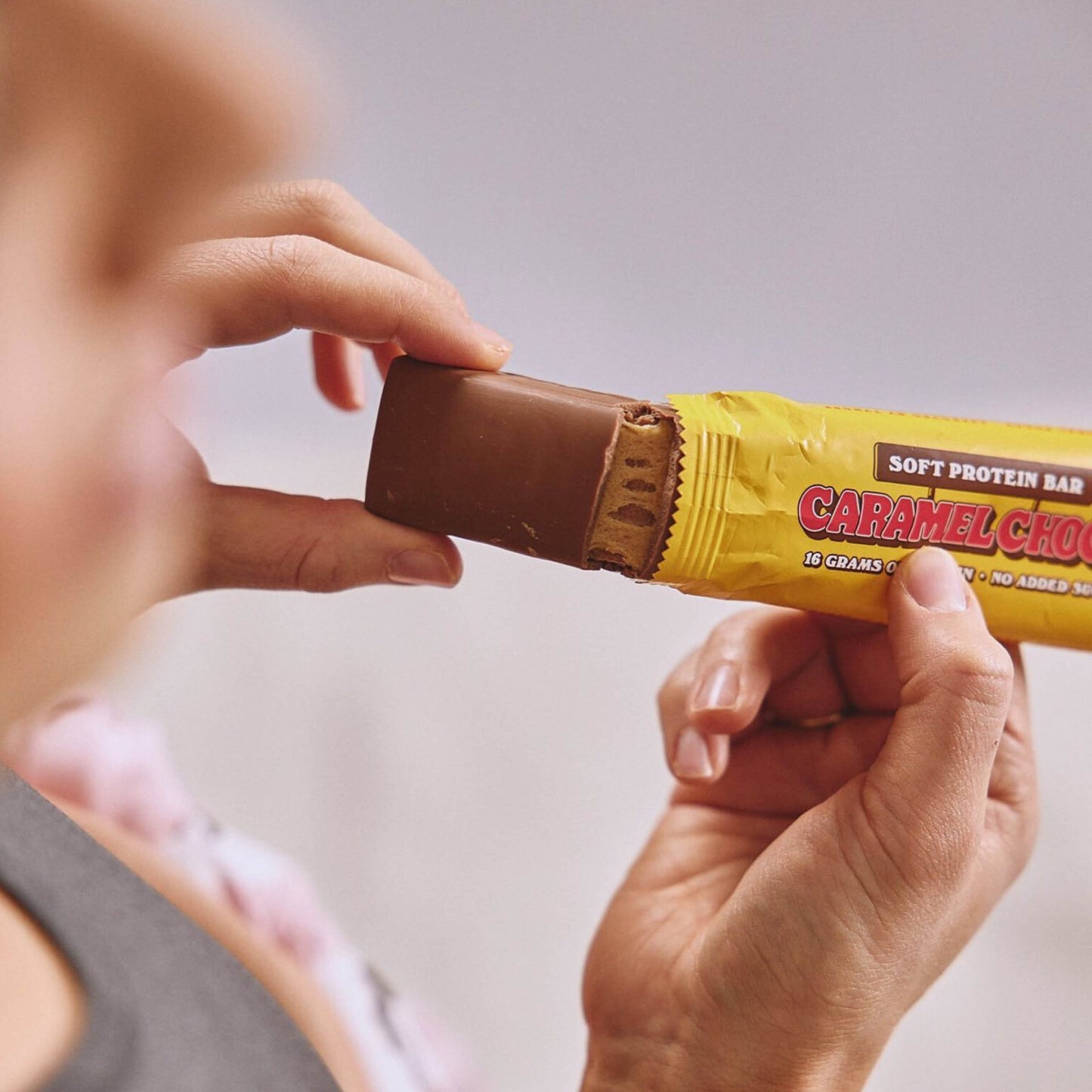 Treat yourself to a delicious, high protein snack with Barebells Caramel Chocolate Soft Protein Bars. Soft chocolate and smooth caramel wrapped in milk chocolate make every bite taste like a treat, while still giving you 16g of protein and no added sugar.