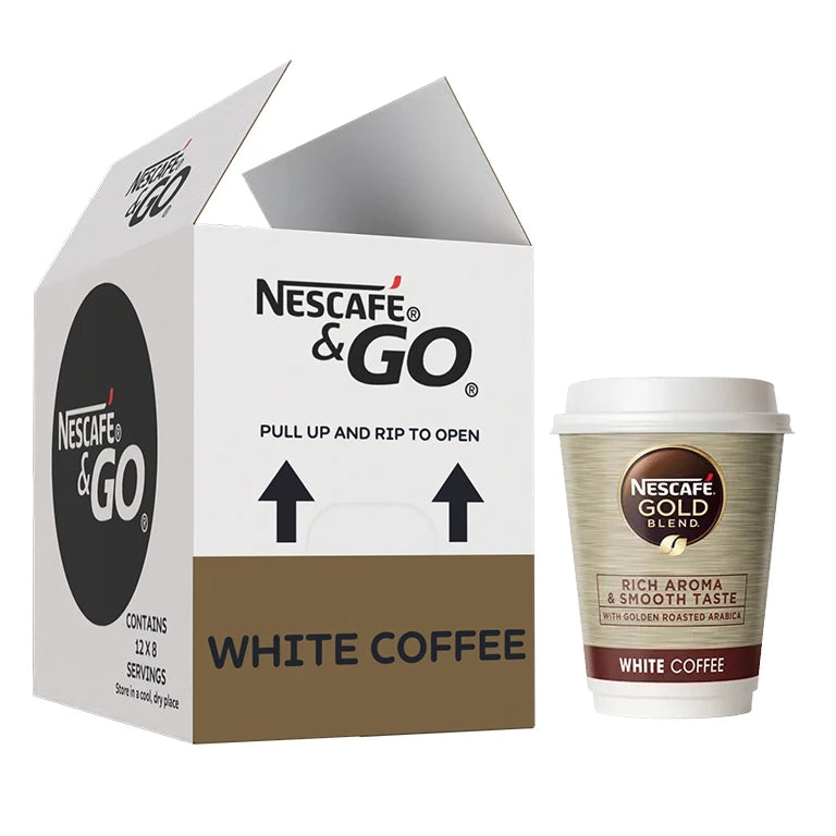 Discover the signature smooth, rich instant coffee of Nescafé Gold Blend White coffee cups in an on-the-go solution. Coffee connoisseurs will appreciate the well-rounded taste and rich aroma in every cup of our delicious White coffee blend. Our expertly crafted blend in our Nescafé Gold Blend White coffee cups are great for coffee on the go, to make moments more special for your customers. Now with a recyclable cup to give your customers a more sustainable coffee on-the-go experience.