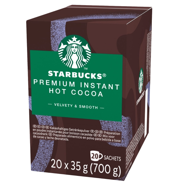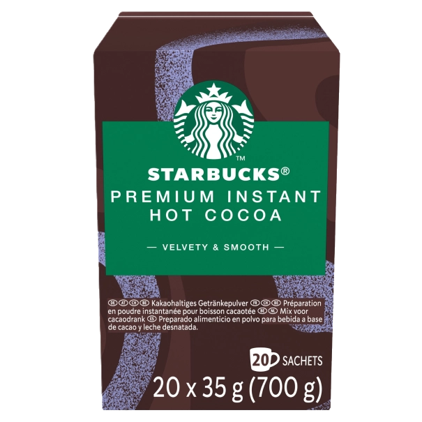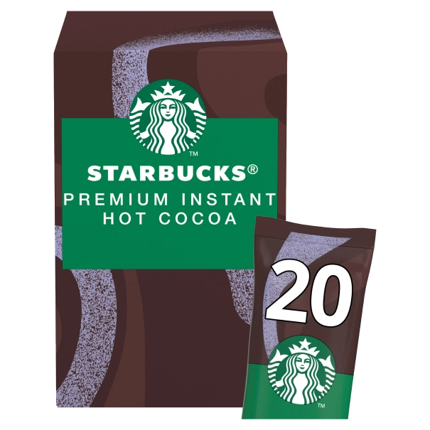 A pack of 20 Starbucks instant hot chocolate sachets. Each 35g sachet delivers smooth, velvety chocolate inspired by Starbucks cafés. Made with cocoa and milk powder for a quick and premium hot chocolate experience.